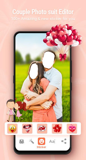 Couple photo suit and get a virtual wardrobe that complements your individual style. If you fascinating to each day life vogue and picture suit, couple photo suit camera app offer facility to offline camera result and largest frames for you. Just take a photo from your camera or select the photo from the gallery and start editing.