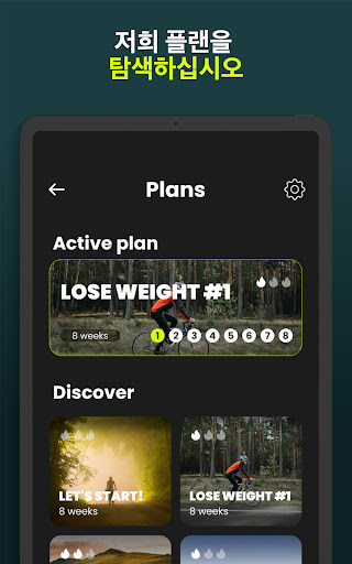 저희가 준비한 자전거와 러닝머신 운동을 따라해보십시오. 가상의 사이클링 트레이너와 달리기 코치는 이 스포츠 앱에서 여러분을 이끌 겁니다.