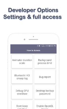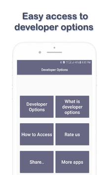 With simple methods just open the app and click the developer option button, the developer settings screen will appear. this Developer options & Settings for Android Developers app is helps you to straight access Developer Options with just one knock and connect to device. Developer options & Settings for Android Developers is a good app and accessible app. Developer options & Settings for Android Developers is free download app and easy to use. Developer options & Settings for Android Developers is simple and android application