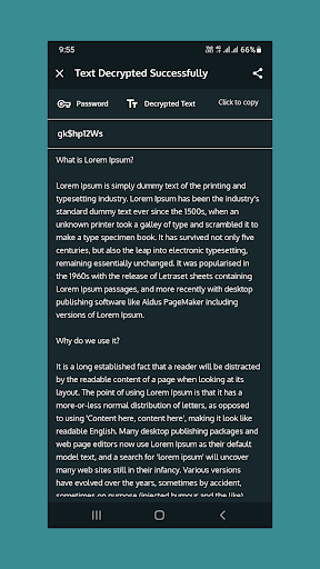 - 모든 암호화 및 암호 해독 된 텍스트는 안전한 키로 다음 화면에서 볼 수 있습니다.