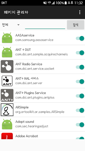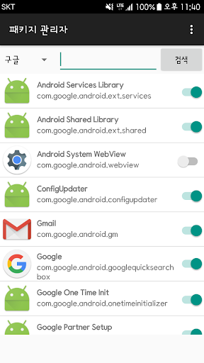 패키지 매니저는 삼성 모바일 기기에서 앱을 활성/비활성 할 수있습니다.