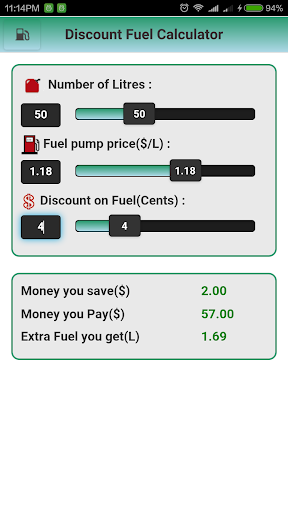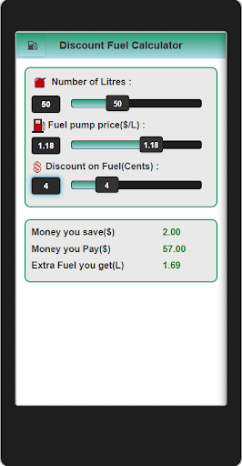 할인 연료 계산기는 할인 Docket 또는 바우처를 사용하여 할인을 계산하도록 설계된 간단한 앱입니다. 할인 연료 계산기는 슬라이더와 같은 간단한 사용자 인터페이스로 설계되었으며 모든 사람이 사용할 수 있습니다.