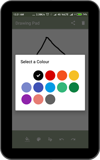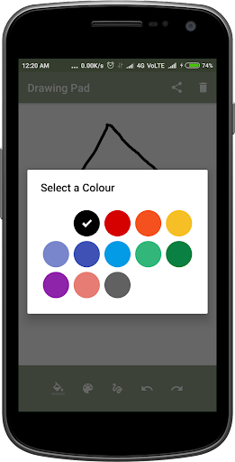 Drawing has 2 features: filling the background and free drawing with different pen colours.