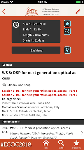 This is the official App of the 44th European Conference on Optical Communication ECOC 2018 which will be held 23-27 September 2018 in Rome.
