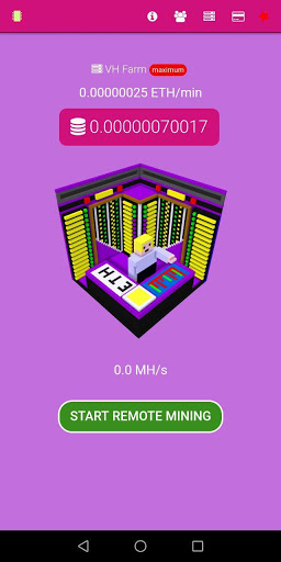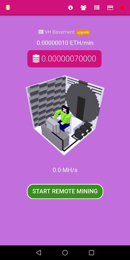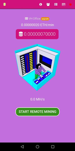 광업 시뮬레이터에는 특별한 기술 및 추가 설정이 필요하지 않습니다. 버튼을 누르면 프로세스 시작한다! 원격 광업 완전히 원격 광산에 수동 소득 돈을 감사에 당신은 할 수 플레이 ETH의 도움으로 그림입니다. 일일 부스터를 사용하여 매일 속도를 높이고 누구보다 더 빨리 결과를 얻으십시오!