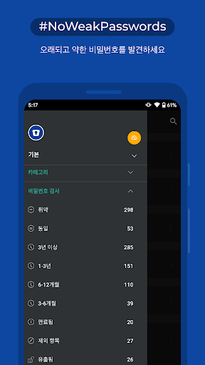 - 오래되고 약한 손상된 비밀번호를 자동으로 체크해 줍니다.