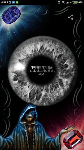 이 어플리케이션(앱)은 오락 형태의 게임 성격을 띠고 있습니다! '운명의 눈' 프로그램 개발자들은 이 앱의 답변을 근거로 사용자측으로부터의 임의의 진술, 행동 또는 행위에 대해 그 어떤 책임도 지지 않습니다. ''운명의 눈' 앱을 설정하시면 설정하기로 정한 최종 결정과 이후 발생하는 결과에 대한 모든 책임은 사용자가 집니다.