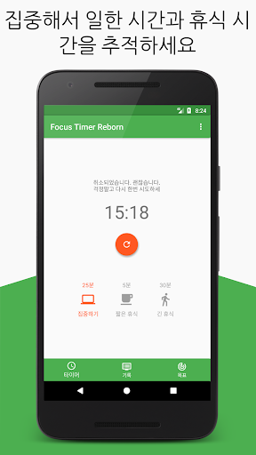 이 안드로이드 응용 프로그램은 작업 집중력 타이머입니다. 또한 작업 로그의 통계 및 성능 분석도 포함됩니다. 집중력을 유지하고 Focus Timer Reborn을 사용하여 학습, 작업 및 교육 세션을 진행하십시오.중요한 현실에 집중하는 대신 당신의 시간을 산만한 일에 낭비하는 행위를 멈추세요