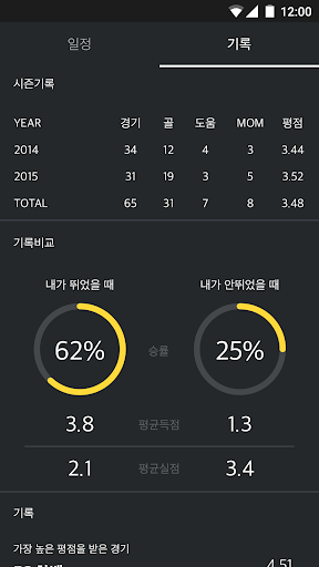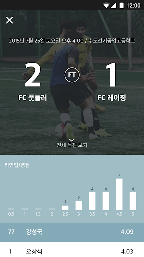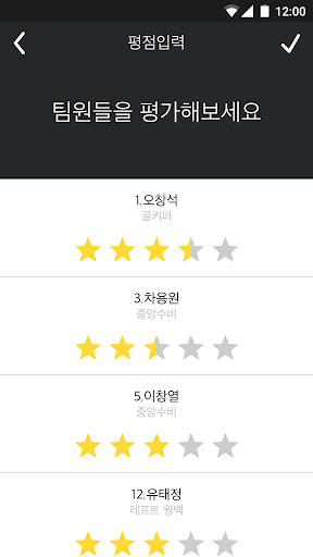 경기가 끝나면 팀원들끼리 평점을 주고 받을 수 있으며 이를 바탕으로 더욱 다양하고 재미있는 기록들을 분석해드리는 서비스입니다.