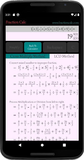 Fraction Calc is a fraction calculator app designed to compute from basic to complex calculation such as the combination of mixed number, improper, and proper fraction.