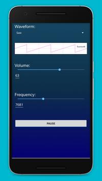 This app also acts as Wave form Generator and Signal Generator. It generates sounds of 4 waves. Just Click on the wave to change the waveform or you can choose form dropdown menu.