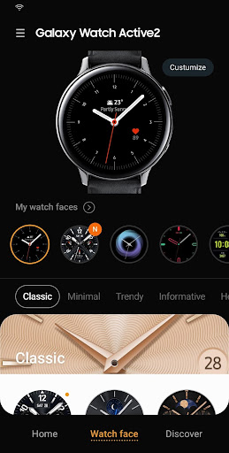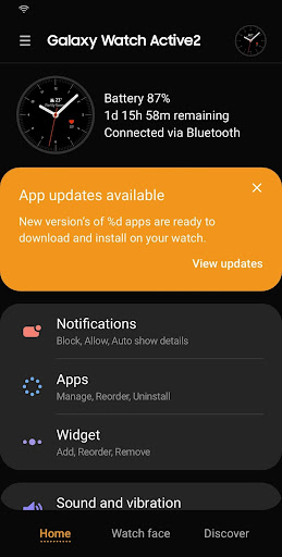 Galaxy Wearable 어플리케이션이 먼저 설치되어 있어야 정상으로 동작합니다.