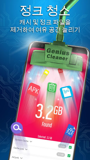 새 앱을 다운로드하는 중에 다운로드하는 데 문제가 있습니까? 게임 도중 전화가 멈추거나 느려 집니까? 이는 저장 공간이 캐시 파일 및 원치 않는 파일로 인해 바쁘고 휴대 전화의 최대 속도를 확보 할만큼 충분한 RAM이 없기 때문입니다. 천재 클리너 (캐시 클리너 & 스피드 부스트는 컴퓨터를 새로운 것처럼 운영하는 깨끗한 기본 로봇입니다.