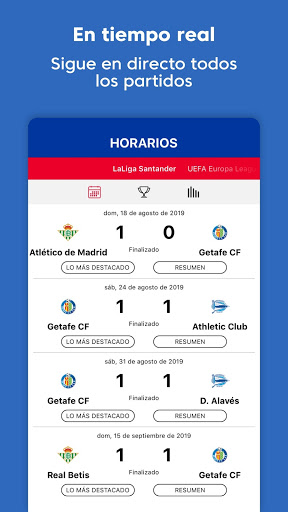 모든 목표와 최상의 멀티미디어 콘텐츠가 완전히 맞는 최상의 멀티미디어 콘텐츠와 일치하는 경기의 가장 좋은 순간을 살 수 있습니다. 목표, 포집, 정지 및 2019 년 2020 시즌의 Getafe CF의 최상의 움직임과 지난 계절의 모든 세부 사항과 함께 액세스 요약. 가장 신화적인 선수를 기억하고 좋아하는 선수의 가장 좋은 목표를 기억하십시오 : Jaime Mata, Gaku, Iván Alejo. Getafe CF의 대회 : Laliga Santander, Copa Del Rey ... 각 경기의 라이브 결과 및 완전히 업데이트 된 일반 분류의 모든 날. 업데이트 된 실시간 정보와 모든 일치하는 동안 일어나는 일마다 모든 작업을 수행하십시오.