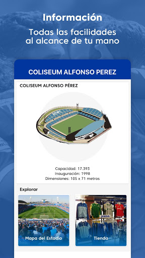 경기장 및 그 역사의 액세스지도를 확인하십시오. 최상의 멀티미디어 콘텐츠에 액세스하고 Getafe CF의 최신 뉴스에 대한 푸시 알림을받습니다.