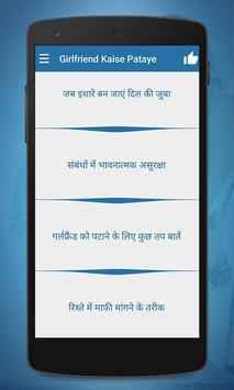 Girlfriend Kaise Banaye application gives the tips of flirting, dating, romance and picking the girls.If you want to impress girl and if she can't give response to you then here is the best solution for it Girlfriend Kaise Banaye.