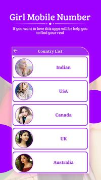 Girls Mobile Number - Girl Phone Number app has a collection of some of personal contact numbers of girls which are from different countries, websites, forums, whatsapp chat groups, and other social networks. You can get these numbers free of cost.