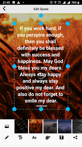 원하는대로 이미지 견적을 편집하십시오 (글꼴, 배경 이미지, 텍스트 크기 등)
