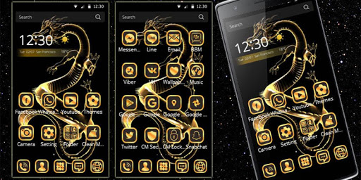 New gold dragon theme brings you gold live wallpaper of ancient gold dragon to beautify your app lock screen cover . Customize your android phone with gold dragon lock screen and dragon legend hd wallpaper .