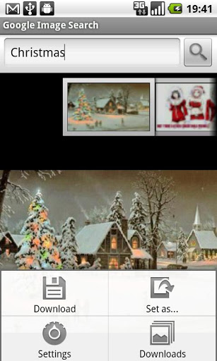 Search images using the Google Image Search engine.Use filters to find the images you want: Color, black amp White. Size: Large, Medium, SmallSet the images as your phone wallpaper or save it into your SD card.browse the images you downloaded.
