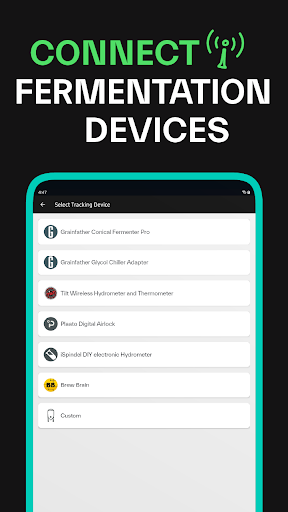 - Tilt, Brewbrain, Ispindel 및 Plaato와 같은 발효 추적 장치와 연결하고 발효 데이터를 계속 유지하십시오.앱.