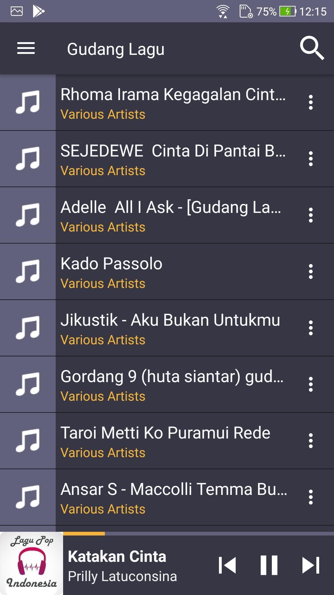 menghilangkan stres lelah setelah jam kerja, belajar lelah gudang lagu mp3 aplikasi. gudang lagu mp3 musik genre seperti pop, Anak, Dangdut, rap, ... dan banyak lagi. Kini aplikasi download musik online gratis di ponsel Anda!