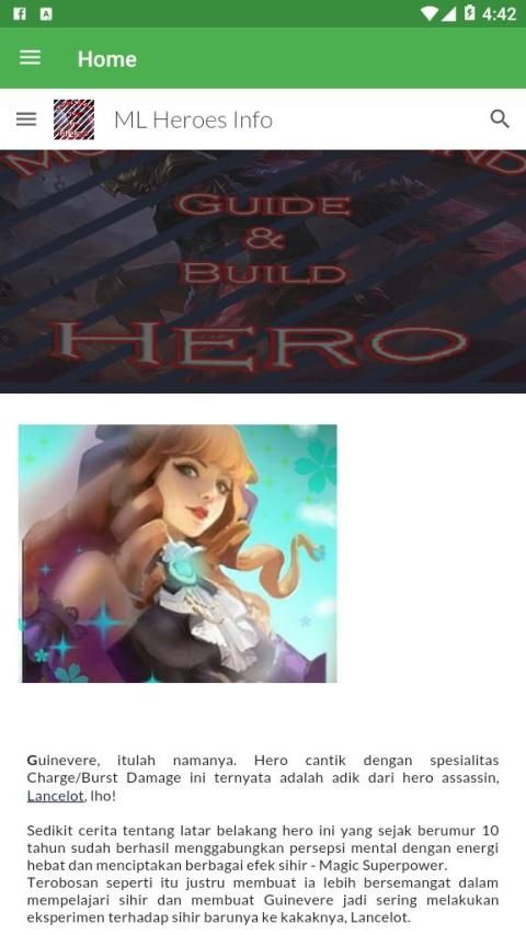 Guide ML is a guide application developed for the ML (mobile legend) mobile game. With this application you can find information on how to make the mobile legend hero that we use in the mobile ml game as much as possible in obtaining victory. The application also updates information from each newly released mobile ml game hero, for example when your new hero comes out will have the opportunity to find out and moreover you can reach The Best player (top global) mobile legend build by using this application.