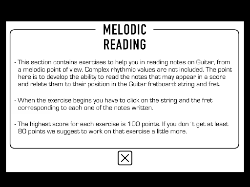 이 응용 프로그램은 기타 시력 읽기 기술을 향상시키는 데 도움이되도록 만들어졌습니다.