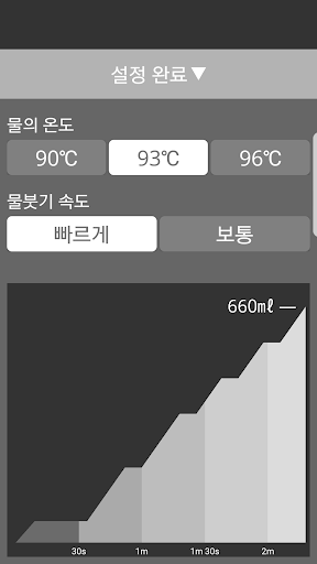 1. 추출용량: 2 – 5 cups, 물의 양: 270-700ml, 물의 온도: 80-96℃