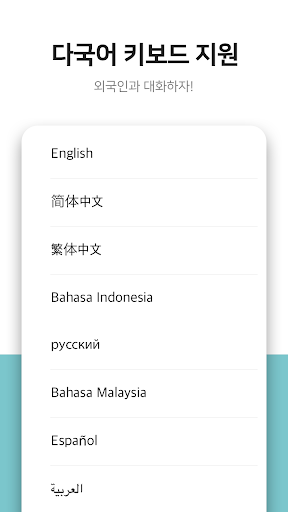 한국어,영어,러시아어,중국어,인도네시아어,말레이시아어,프랑스어,스페인어,이탈리아어,독일어,포르투갈어,터키어,아랍어 베트남어 지원