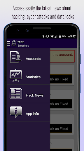 또한 앱에는 사이버 공격 및 도난 데이터에 대한 뉴스를 보여주는 섹션이 있습니다.