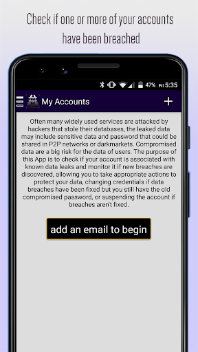 이 앱의 목적은 계정이 알려진 데이터 누출과 관련되어 있는지 확인하고 새로운 위반이 발견 된 경우 모니터링하는 것입니다.고정되었지만 여전히 구식 비밀번호가 손상되거나 위반이 고정 된 경우 계정이 중단됩니다.