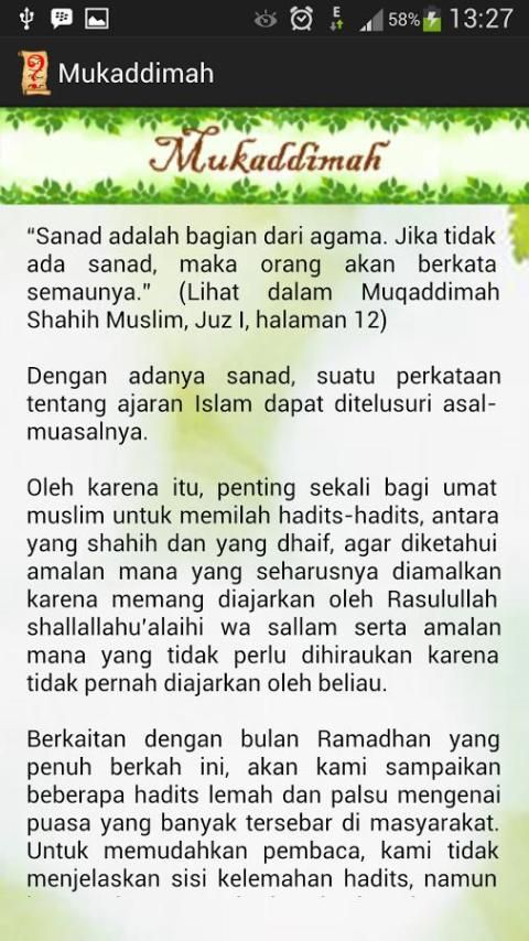 In this application presented some weak and false hadith about fasting is widely spread in the community. In addition, this application does not explain the weakness of the hadith, but will only mention the conclusion hadith experts who analyzed it. You who want to explore the weaknesses of the hadith, can refer to the book of the scholars concerned.
