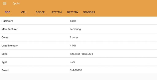 Hardware info - Want to see all the information on your Android device on a single screen? All of the features of your device, including your battery temperature, processor model, are in our application CpuM.