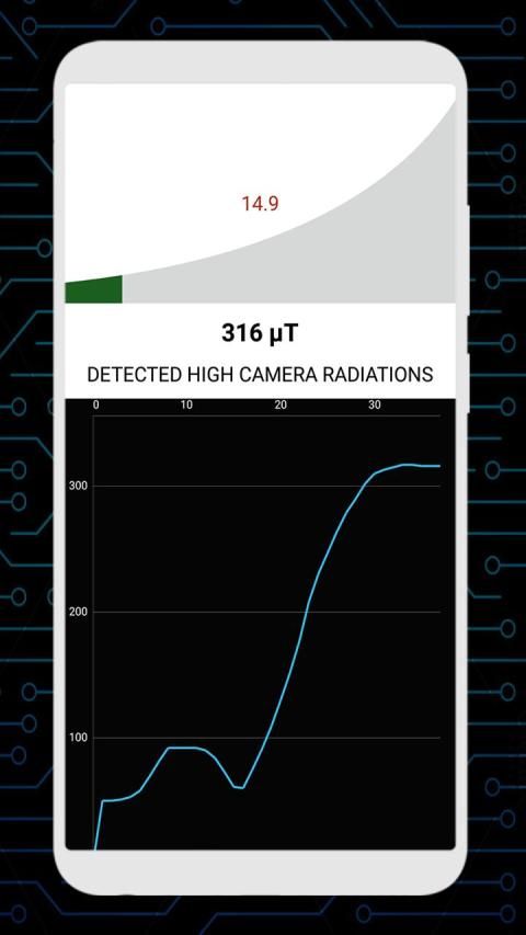 Hidden camera detector Hidden camera detected camera founder found hidden camera, find hidden camera by radiation meter. you can use this hidden camera detected camera scanner app to detect infrared camera. It detect hidden devices easily such as camera, bugs, metal, microphones, glint. this hidden camera detected camera founder protect you from spy hidden camera. some thing the reading of radiation meter of magnetic sensor of your mobile stuck.