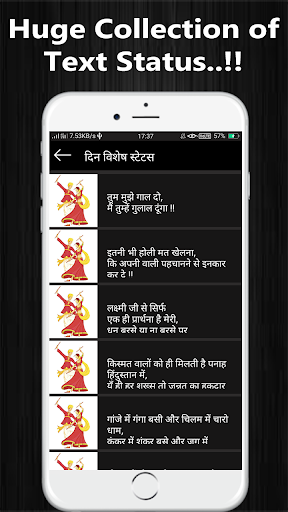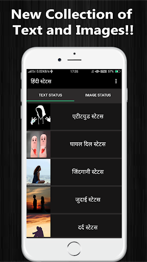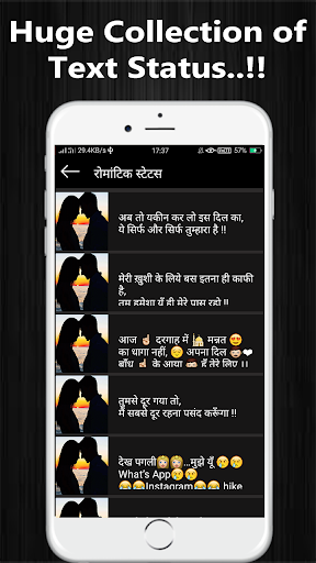 힌디어 상태 앱에는 텍스트 상태 및 가장 큰 전체 화면에서 가장 큰 컬렉션의 20 개 범주가 포함되어 있습니다.힌디어지수.로