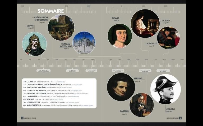 Each event is placed in context as well as within the historical chronology. The "French genius" is honored with portraits of scientists, inventors, explorers, artists and writers, industrialists, builders and poets who wrote them as beautiful pages in the history of our country.