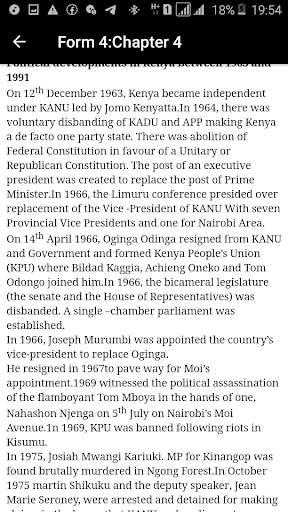 The app contains: -Easy to understand comprehensive notes for form 1,form 2,form 3 and form 4. -Questions at the end of every topic. - 10 KCSE past papers for both paper 1 and 2