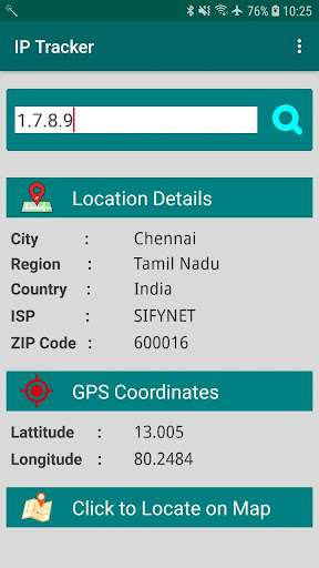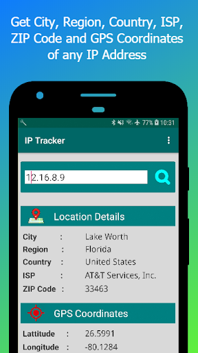 🎯 IP 주소 추적기 및 로케이터 앱. 🔸 IP 검색 : 세계에서 IP 주소를 검색합니다. IP 위치 : IP 주소의 자세한 내용을 얻으십시오. 지도에서 찾기 : 도시를 찾습니다,지도의 위치. IP 주소의 도시, 지역 및 국가를 얻으십시오. ✔ GPS 좌표, 위도 및 IP 주소의 경도를 가져옵니다. 맵은 정확한 위치를 나타내지는 않지만 도시 또는 대략적인 위치를 보여줍니다.