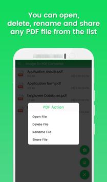 Basically, app creates PDF file from any image. Multiple images can be selected and converted to PDF. Moreover, if you want to take image on the spot, then camera opens automatically. Once created, you can share, delete and share the PDF file too.