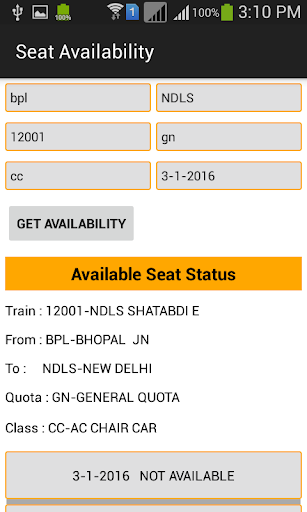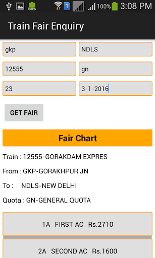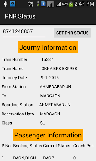 This app provide information about Indian railway and journey.It facilitate find train between station, PNR inquire,fair,seat availability,cancelled trains and live train status.It provide quickly and easily at one tap.It is online app without internet could not get any information.