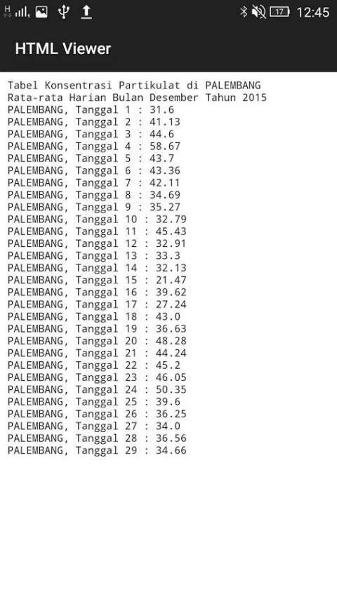 Version 1.0 of this application displays information Particulate Matter Concentration