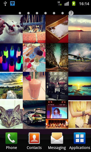 Make your home screen a beautiful art gallery with top photos from InstagramThis great widget lets you add on yours phone home page pictures from one of the most popular social portals . You can mix them with other application icons. You can change the pictures by simple click. You can set your home screen wallpaper with the given picture from the widget by just a single click and you can go to the picture39;s home page as well.It is only within your imagination how you will order pictures on the screen to make your phone beautiful. You can have as many widgets on the screen as you want. No adds, no limitations, it39;s all free. Just install the app, put some widgets on your screen and have fun changing the pictures by just touching them.You don39;t need to search the Internet for ages to have nice wallpaper. You just see the most popular pictures on your widget and whenever you want you may set your wallpaper by a single touch.Have fun :