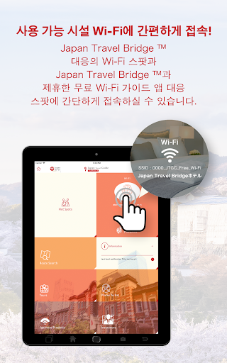 Japan Travel Bridge ™ 대응의 Wi-Fi 스팟과 Japan Travel Bridge ™과 제휴한 무료 Wi-Fi 가이드 앱 대응 스팟에 간단하게 접속하실 수 있습니다. (대상시설 점차 확대 중)