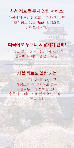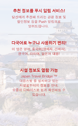 당신에게 추천해 드리는 관광 정보 및 할인정보 등을 Push 알림으로 알려드립니다. 또한, 놓쳐 버린 정보는 메시지 box에 최대 50개까지 저장됩니다.