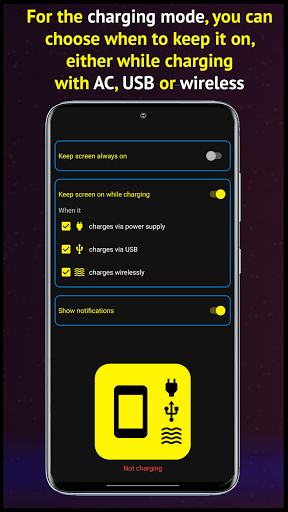 항상 화면을 보관하십시오.때로는 휴대 전화의 화면을 항상 계속 유지해야합니다.운전 중 또는 스마트 폰을 기상 방송국으로 사용할 때.이 응용 프로그램을 사용하면 디스플레이가 꺼지지 않도록 장치를 설정할 수 있습니다.