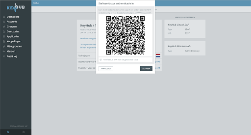 topicist Keyhub 환경에 로그인하고 프로필로 이동하여 2FA 세트를 선택하십시오.QR 코드를 검사하고 정품 인증을 클릭하는 것을 잊지 마세요.