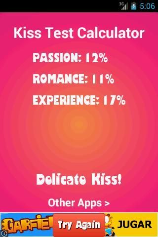 Kiss Test Calculator is a free app that test your ability to kiss. It's really fun and easy to use. Now you can find out if you kiss like a film star or you kiss like a frog. It's easy to know just: