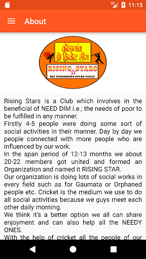 Rising Stars is a Club which involves in the beneficial of "NEED DIM" i.e.; the needs of poor to be fulfilled in any manner.