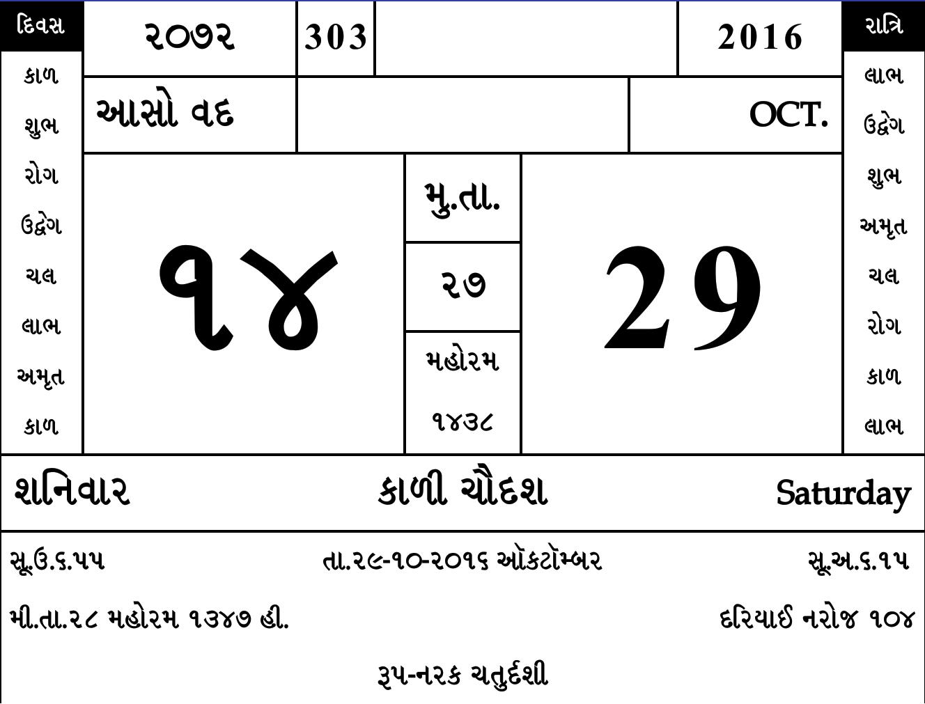 It is the most famous Calendar (also known as "DUTTO") used by Kutchis and Gujaratis across the world. It has all the details for Jain, Hindu, Muslims and other religions as well.You can get information about holidays,tithis, choghadiya, festivals and so many things. A must have for every household.
